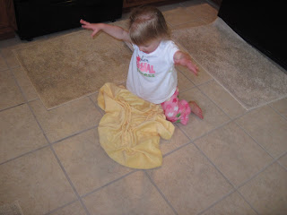 She got her brother's changing table cover out of the package. She likes anything that is soft! She laid it on the floor and said 'Nite Nite'....LOL.